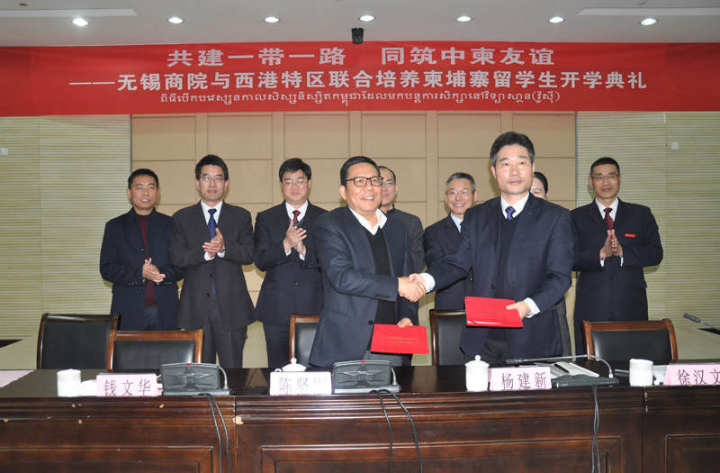 12月23日,9名由西港特區公司資助的柬埔寨學生在無錫商院參加了“共建一帶一路 同筑中柬友誼——無錫商院和西港特區聯合培養柬埔寨留學生開學典禮”儀式,未