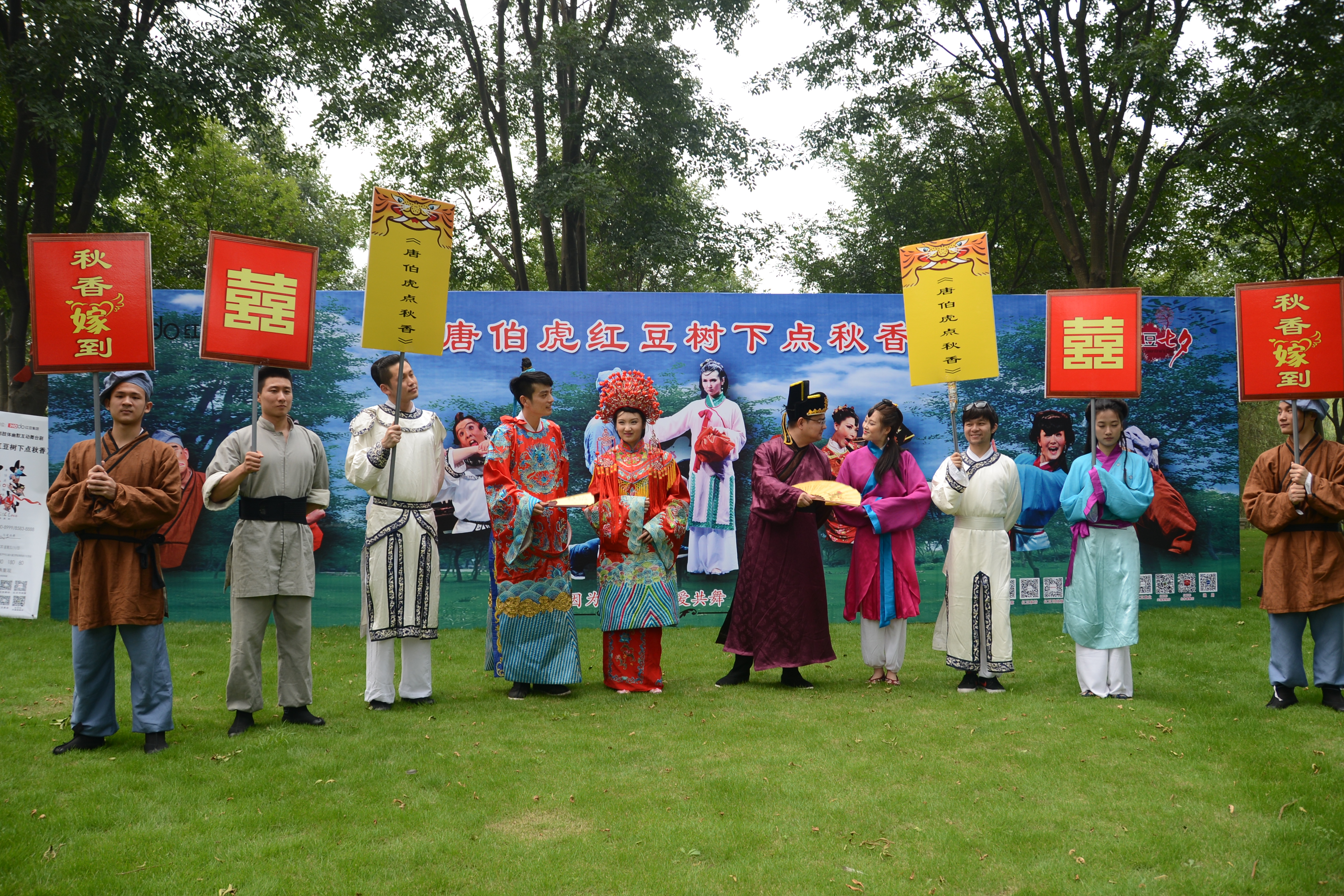 唐伯虎紅豆樹下點秋香。七夕明月夜,千里共嬋娟。唐伯虎點秋香,這個浪漫的愛情故事不知羨煞了多少有情人。七夕夜,唐伯虎、秋香這對才子佳人,穿越時空隧道,來到浪漫的紅豆樹下,以現代人的時尚方式,把他們的經典愛情故事,通過夸張幽默的肢體語言演繹出來,給廣大觀眾端上了一道不一樣七夕大餐。為了使唐伯虎點秋香更好看,劇組還突破以往故事傳統,融入相思紅豆的構思,以愛情為橋梁,嗩吶、吹笙喜氣洋洋,鳴徹紅豆樹,大紅喜服、珠釵搖曳步步含情,唐伯虎與秋香在紅豆樹下定情。唐劇還有一大看點,就是與唐伯虎送給秋香的定情信物,相信是所有看唐劇的人非常關心的。唐伯虎的這個大才子,不愧是文人,他送給秋香的兩顆殷紅似血的紅豆象征愛情堅貞不渝。相信,紅豆將代替玫瑰,成為情人間新的愛情信物。總之,由紅豆集團獨家冠名的中國第一部肢體幽默互動舞臺劇“唐伯虎紅豆樹下點秋香”一定“憋死觀眾、笑死觀眾”,重溫經典愛情故事,更添紅豆七夕節日的喜氣。