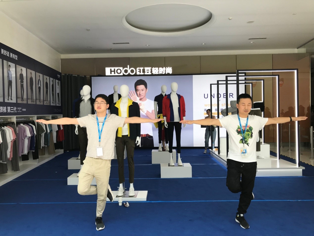 ? ? ? ? 新品發(fā)布,驚喜連連,紅豆快閃店也驚艷亮相蘇寧,快閃店以產(chǎn)品體驗(yàn)為主,線上線下聯(lián)動(dòng),引爆七夕。現(xiàn)場(chǎng)紅粉爭(zhēng)相體驗(yàn)紅豆3D高彈褲等人氣產(chǎn)品,沒有親身加入深蹲挑戰(zhàn)的紅粉似乎還不過癮,又紛紛加入快閃店的體驗(yàn)互動(dòng),閉眼10秒挑戰(zhàn)大鵬展翅,在現(xiàn)場(chǎng)又掀起了一波高潮。