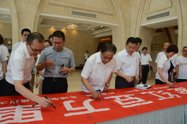 集團(tuán)黨委書(shū)記、總裁周海江參加啟動(dòng)儀式并講話。周海江在講話中表示,“大愛(ài)紅豆萬(wàn)里行”歷時(shí)十天,行程萬(wàn)里,探訪人員從無(wú)錫出發(fā),深入重慶、四川等地紅豆村,通過(guò)“尋找最美愛(ài)的故事”、“尋找最古老紅豆村落”、“關(guān)愛(ài)留守兒童、老人”、“資助寒門(mén)學(xué)子上大學(xué)”等系列公益活動(dòng),用“愛(ài)”踐行社會(huì)責(zé)任,用“愛(ài)”傳播紅豆情懷,用“愛(ài)”弘揚(yáng)中華文化,用“愛(ài)”唱響“紅豆七夕節(jié)”。“紅豆村、紅豆樹(shù)、紅豆情”,因?yàn)椤凹t豆”,紅豆集團(tuán)與全國(guó)紅豆村心心相連,紅豆村也是紅豆集團(tuán)的黨建共建單位,通過(guò)此次活動(dòng)進(jìn)一步加強(qiáng)雙方共建,促進(jìn)雙方共同發(fā)展。周海江希望探訪人員發(fā)揚(yáng)四千四萬(wàn)精神,吃苦耐勞,通過(guò)聚走和探訪,充分挖掘本次活動(dòng)的文化內(nèi)涵和精神實(shí)質(zhì),使紅豆之愛(ài)在全國(guó)紅豆村落地生根,開(kāi)花結(jié)果。