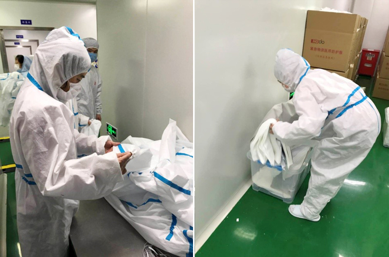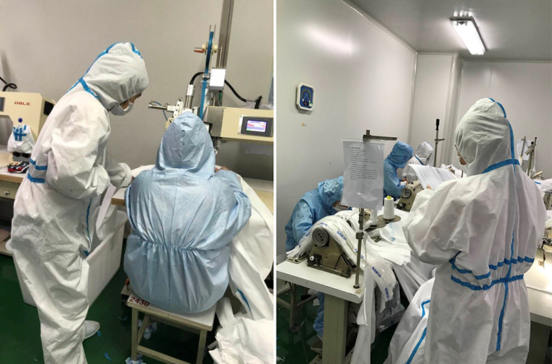 湯俊飛介紹說:“生產(chǎn)醫(yī)用防護(hù)服與生產(chǎn)民用防護(hù)服是完全不同的,這是我從未接觸的領(lǐng)域,所以我也在向?qū)I(yè)人士學(xué)習(xí)?!贬t(yī)用防護(hù)服的生產(chǎn)不僅對于生產(chǎn)環(huán)境標(biāo)準(zhǔn)嚴(yán)格,需要按照無菌環(huán)境建設(shè),將空氣中的微粒子、細(xì)菌等污染物排除,確保制作時不受污染,而且在面料、工藝方面也有很高要求。從面料輔料的采購、打樣,到調(diào)試機器、縫紉,每一項流程都要嚴(yán)格按照國家標(biāo)準(zhǔn)出發(fā),尤其讓湯俊飛及技術(shù)人員感到頭疼的是對于縫紉的特殊要求,他們根據(jù)不同類型的面料經(jīng)過不斷地調(diào)整測試后,終于將膠條機調(diào)試成功。技術(shù)難關(guān)被逐個攻破,生產(chǎn)也進(jìn)入加速階段。