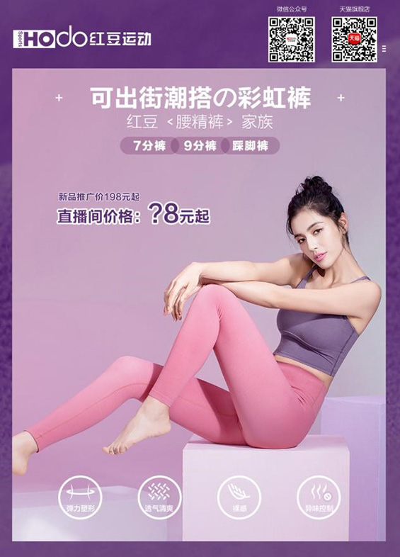 現(xiàn)在的女孩子都喜歡穿能夠凸顯身材的衣服,尤其是褲子,專挑能夠顯腿細(xì)腿長的。紅豆運(yùn)動裝的新款小妖精褲,加高14cm超高腰設(shè)計(jì),加寬腰面更帖和,收腹作用明顯,能夠凸顯完美S型身材。面料非常柔軟舒適,沒有壓迫感,能夠滿足任何大幅度拉伸活動。而且,面料還使用了抗菌劑,能有效控制異味,如化學(xué)氣味,汗臭等,還可以抑制微生物細(xì)菌滋生,適合各種敏感肌穿著。