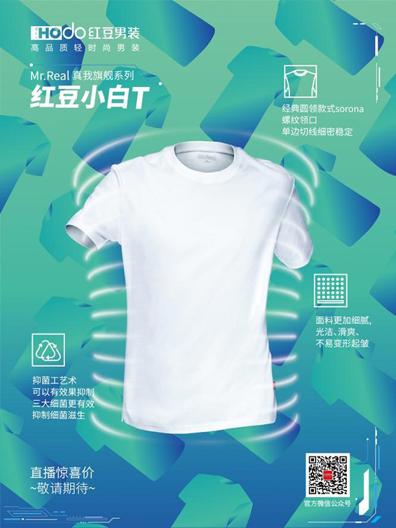 紅豆男裝的夏季新款小白T,時(shí)尚耐穿,是夏季男士的必備單品。小白T精選優(yōu)質(zhì)純棉面料,經(jīng)過特殊工藝處理后,面料吸濕排汗功能非常強(qiáng),貼身穿著可以給消費(fèi)者帶來清涼體感。并且與眾不同的是,此款小白T還采用了德國魯?shù)婪蛞志幚?,可以有效抑制四大?xì)菌:大腸桿菌、金黃色葡萄球菌、肺炎桿菌和白色念珠菌,真是一件環(huán)保又安全的T恤。