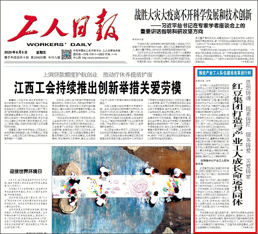 作為唯一入選全國產改項目試點的民企,江蘇紅豆集團積極探索在非公企業開展黨建工作的方式方法,出臺《黨建帶工建推進產業工人隊伍建設改革試點工作方案》,全面實施“四鑄四有”工程,著力改革創新紡織行業產業工人隊伍建設體制機制、方式方法,為集團產業強企提供動力和保障,為全國產業工人隊伍建設改革探索“紅豆樣本”。